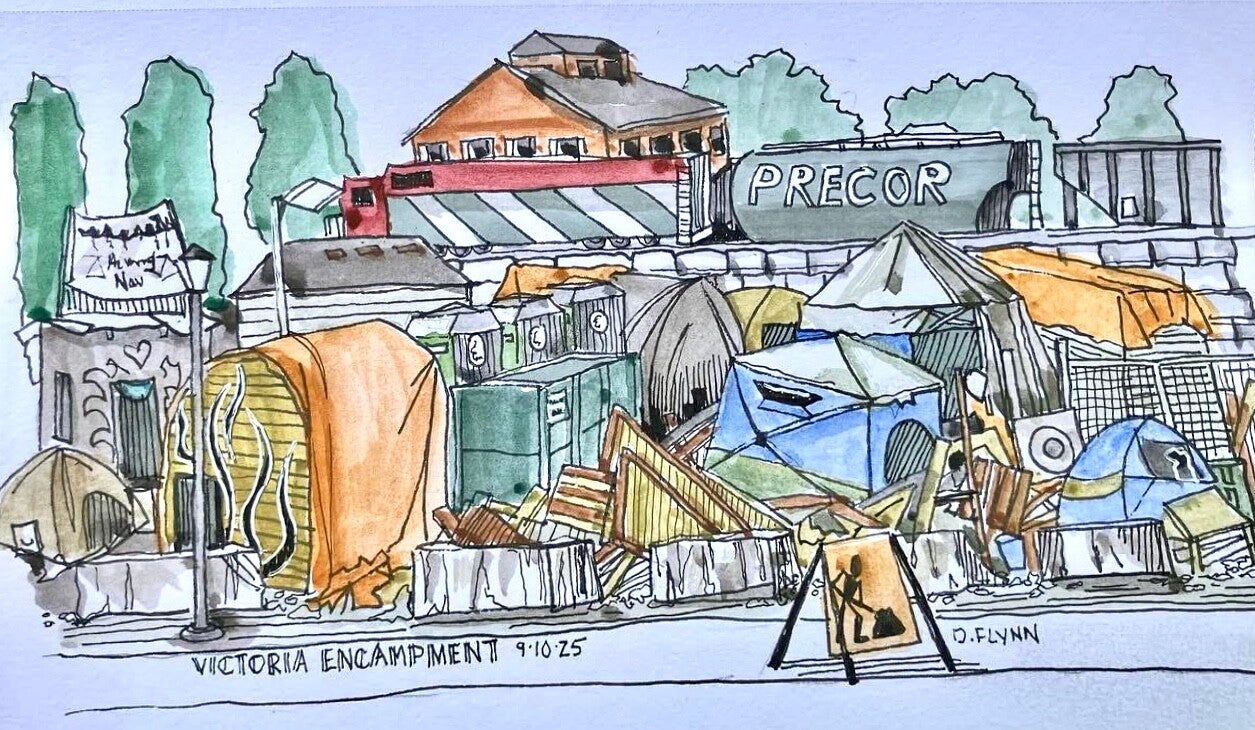 About 10 years ago, Deb got hooked on urban sketching, and in 2023, she dedicated the whole year to sketching and sharing stories about the homeless community in Waterloo Region. She’s been showing off these amazing sketches at galleries and art shows around the area. Deb loves experimenting with different mediums and papers, always picking what makes the scene pop the most.